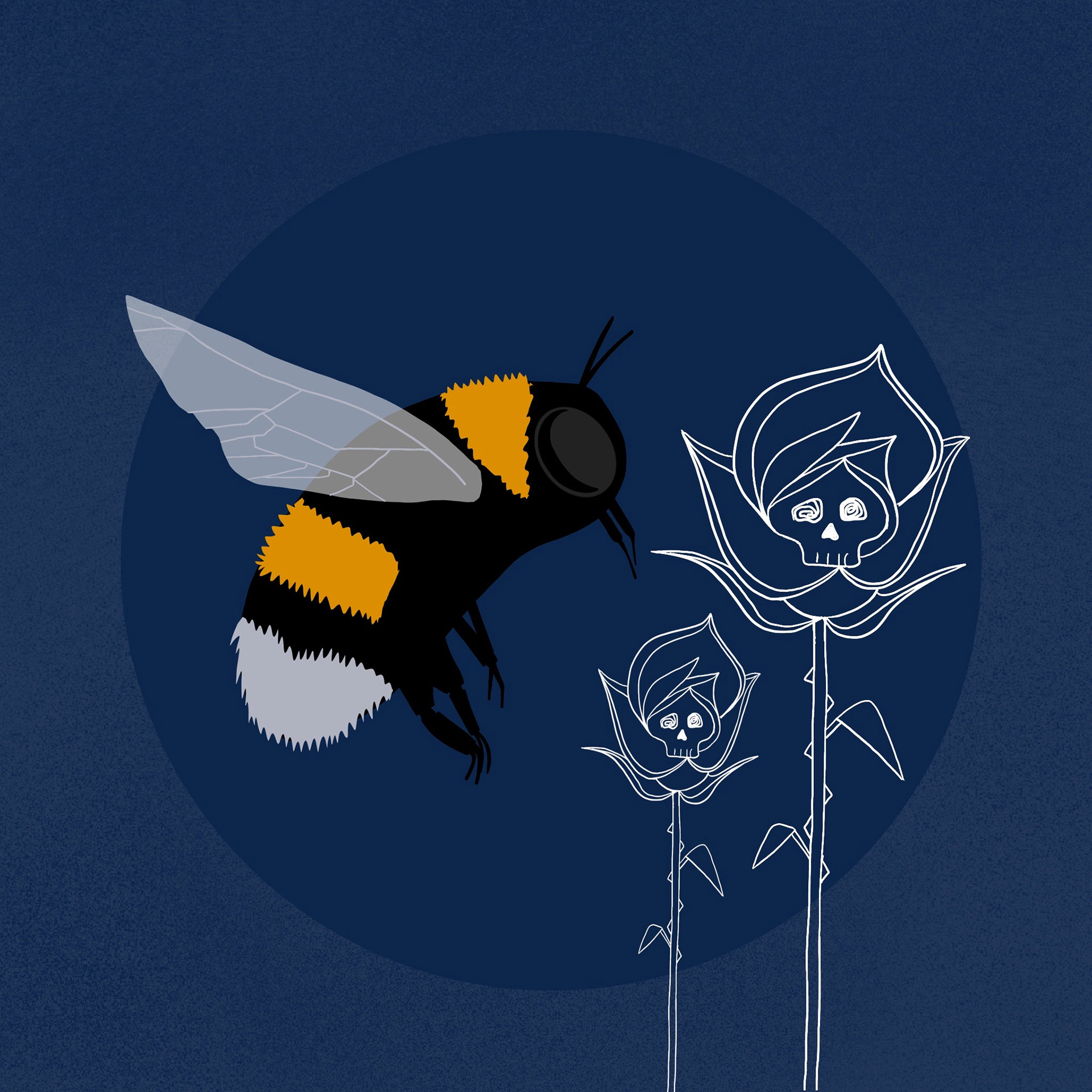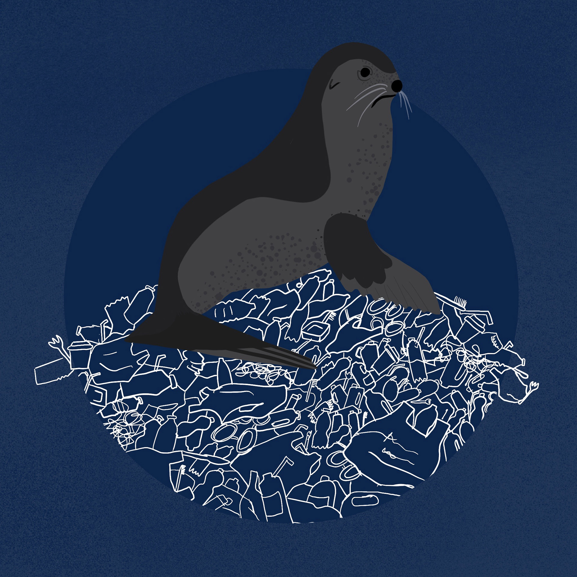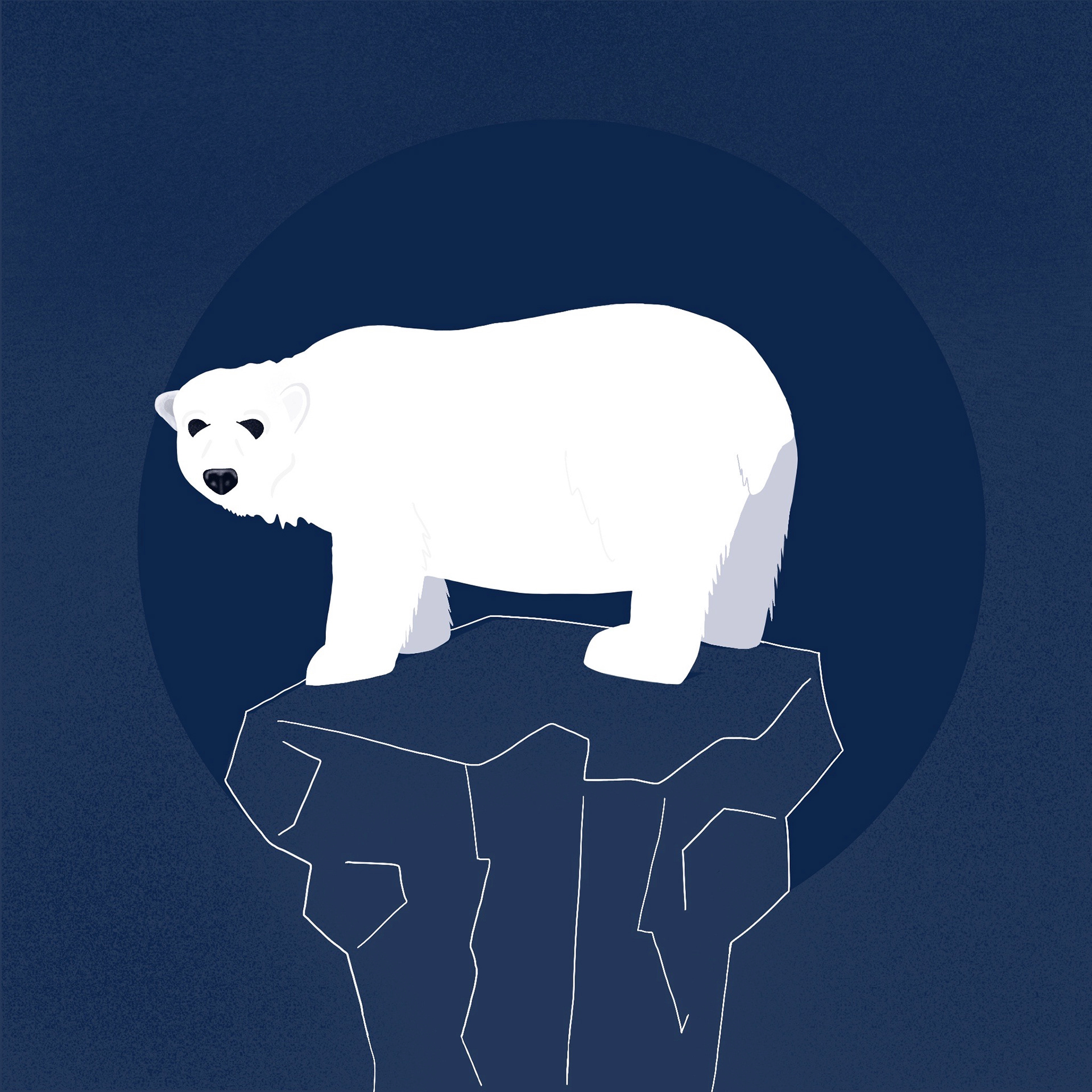 A series of illustrations that highlight the climate change issue from plastic to the declining number of bees.
