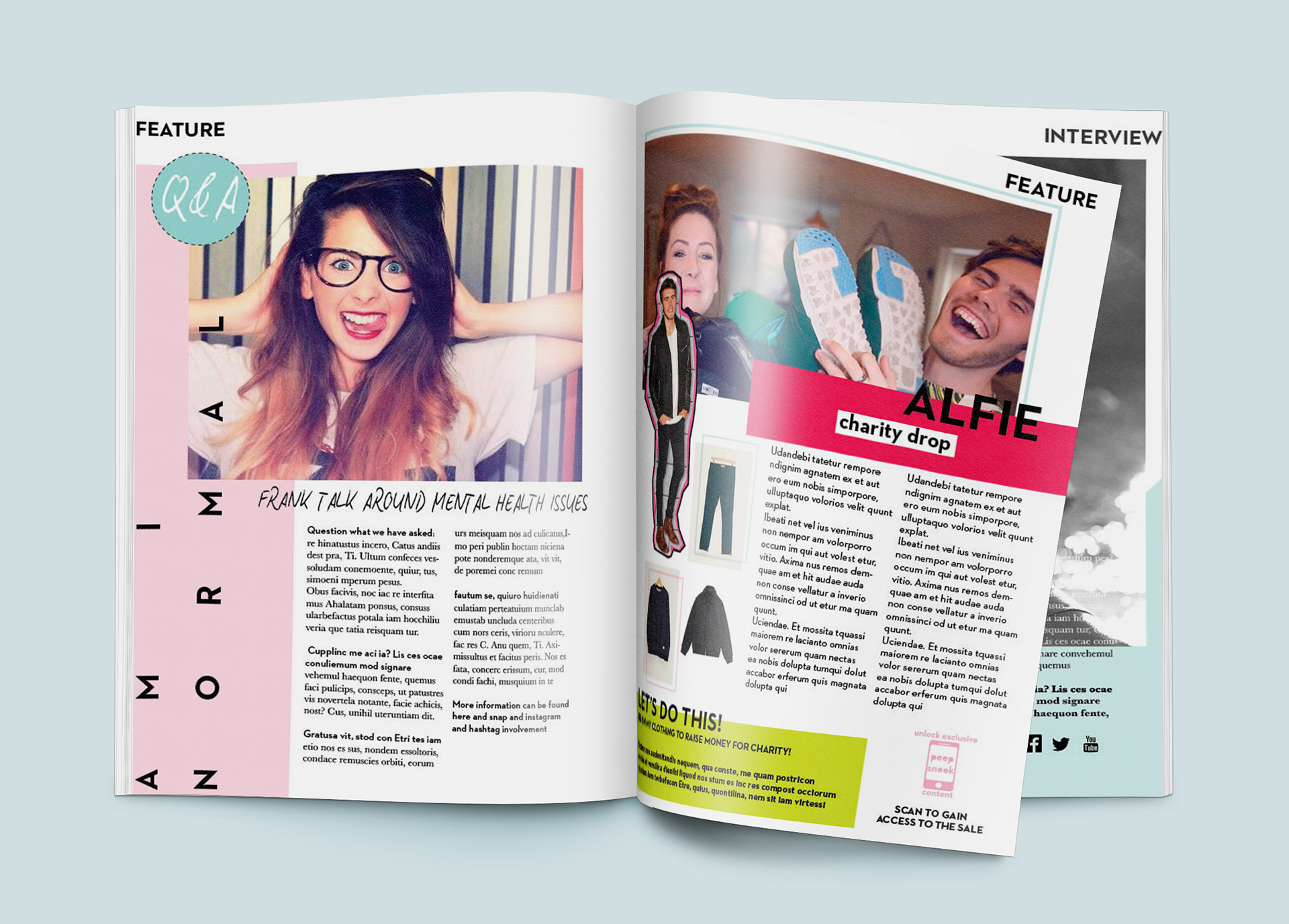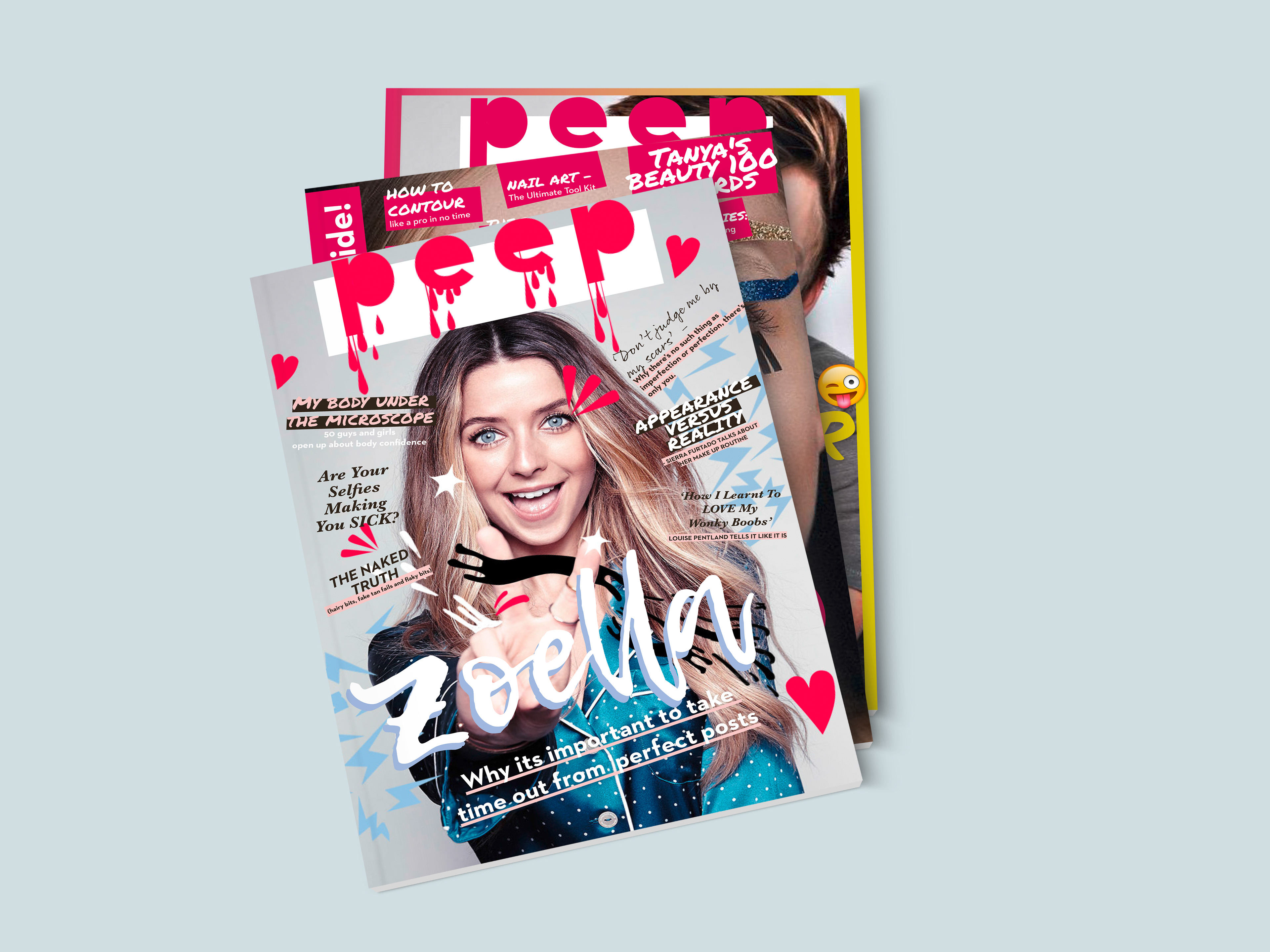Cross media branding and design concept for a blogger magazine aimed at the teen market off the back of the sharp rise in vloggers and influencers.